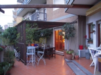 Il progetto per la struttura precaria è solo il pretesto per riorganizzare un terrazzo ampio e ben esposto dove la committenza vuole riorganizzare tutta la vita dell’abitazione e dove vi si affacciano gli ambienti giorno.